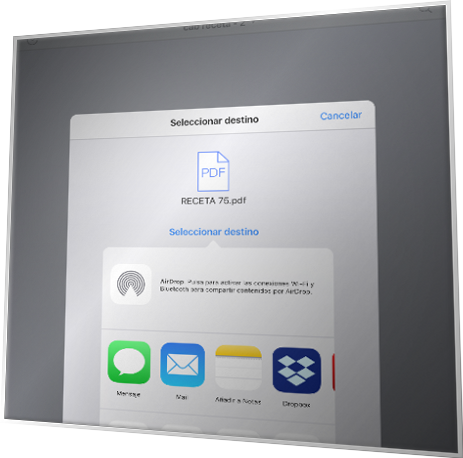 Con la aplicación en su ipad puede generar un Pdf de su albarán o su receta, el iPad le permite configurar totalmente el documento generado, con el tamaño y formato que usted quiera.