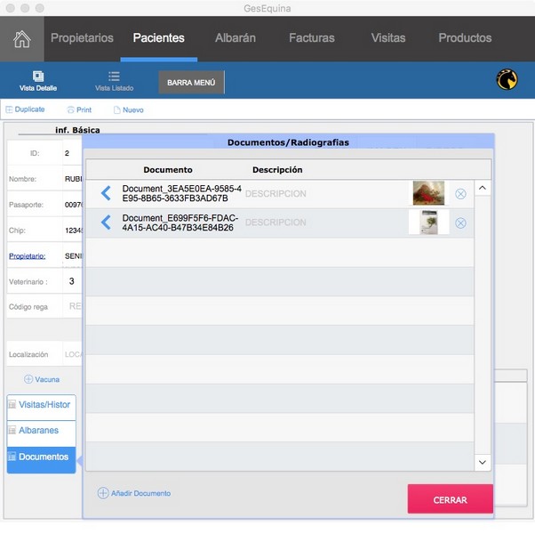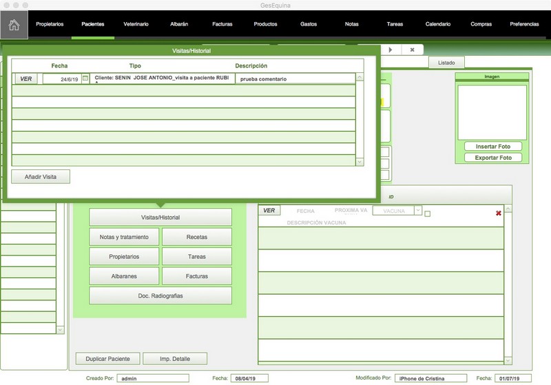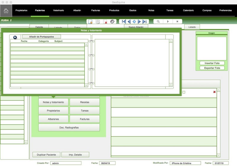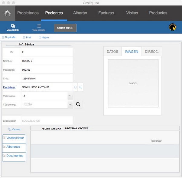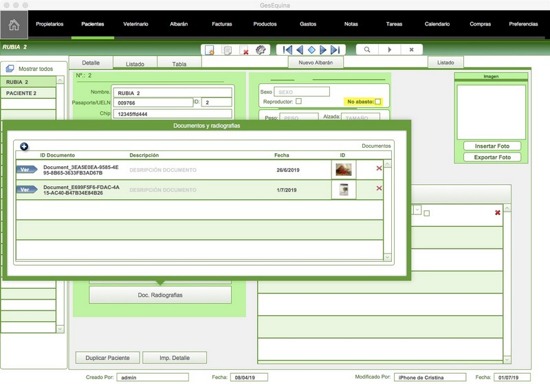 Ficha Pacientes gestion veterinaria, ficha del paciente a tratar en la clinica veterinaria - GesEquina