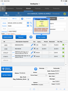 La receta generada por GesEquina tambien se puede enviar en formato Pdf directamente desde el iPad a su cliente.