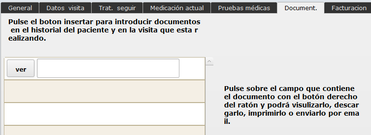 En la pestaña documentos puede añadir cualquier tipo de archivo para asociarlo a esa visita, fotografias, videos, radiografias, Pdf con informes, etc.