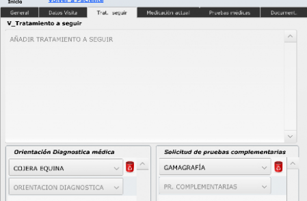 En esta pestaña dispone de un amplio campo de texto, donde podrá describir de forma detallada el tratamiento que ha indicado y 2 campos de selección rápida: